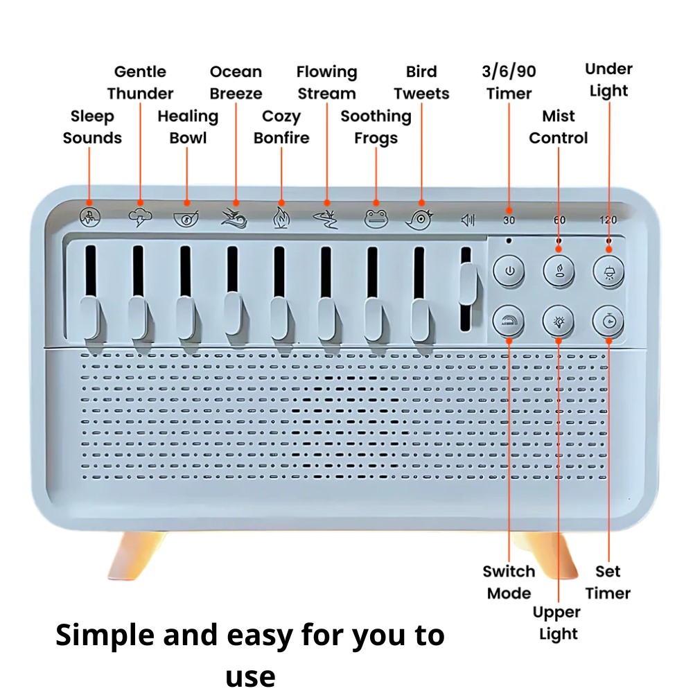 8 non-repetitive sounds – rain, ocean, birds, stream, and more. - 200ml Essential Oil Diffuser
